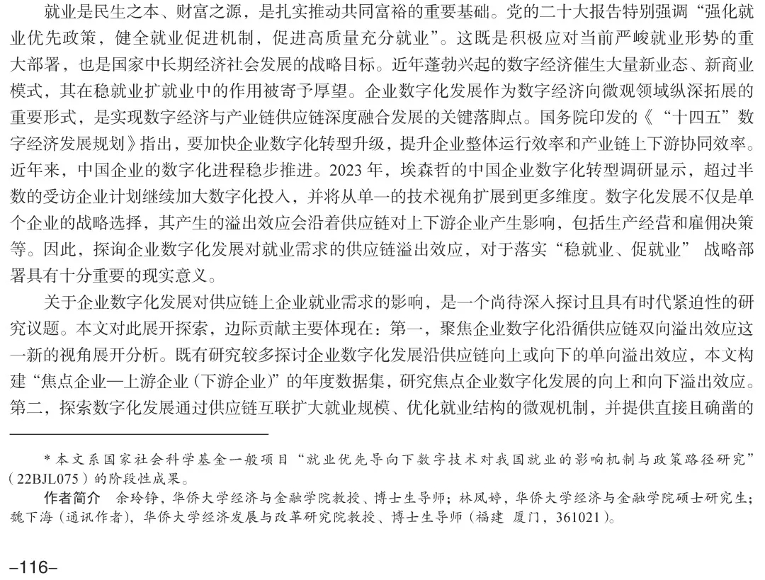 [关键词]  企业数字化发展 供应链溢出 就业增长