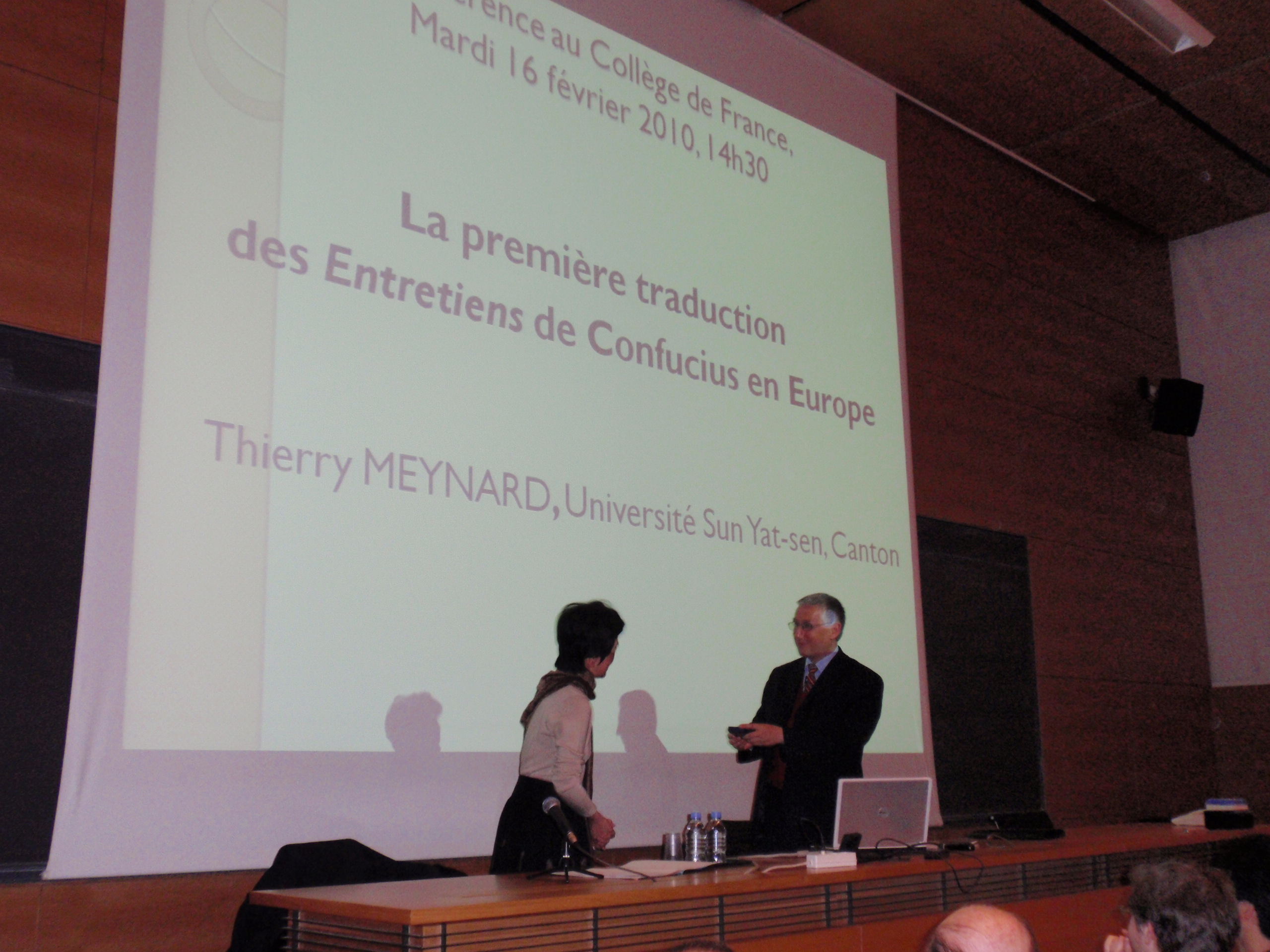 2010年在法兰西学院专题演讲:论语在欧洲的首译本2014年在第四届世界汉学大会:耶稣会士与儒家经典